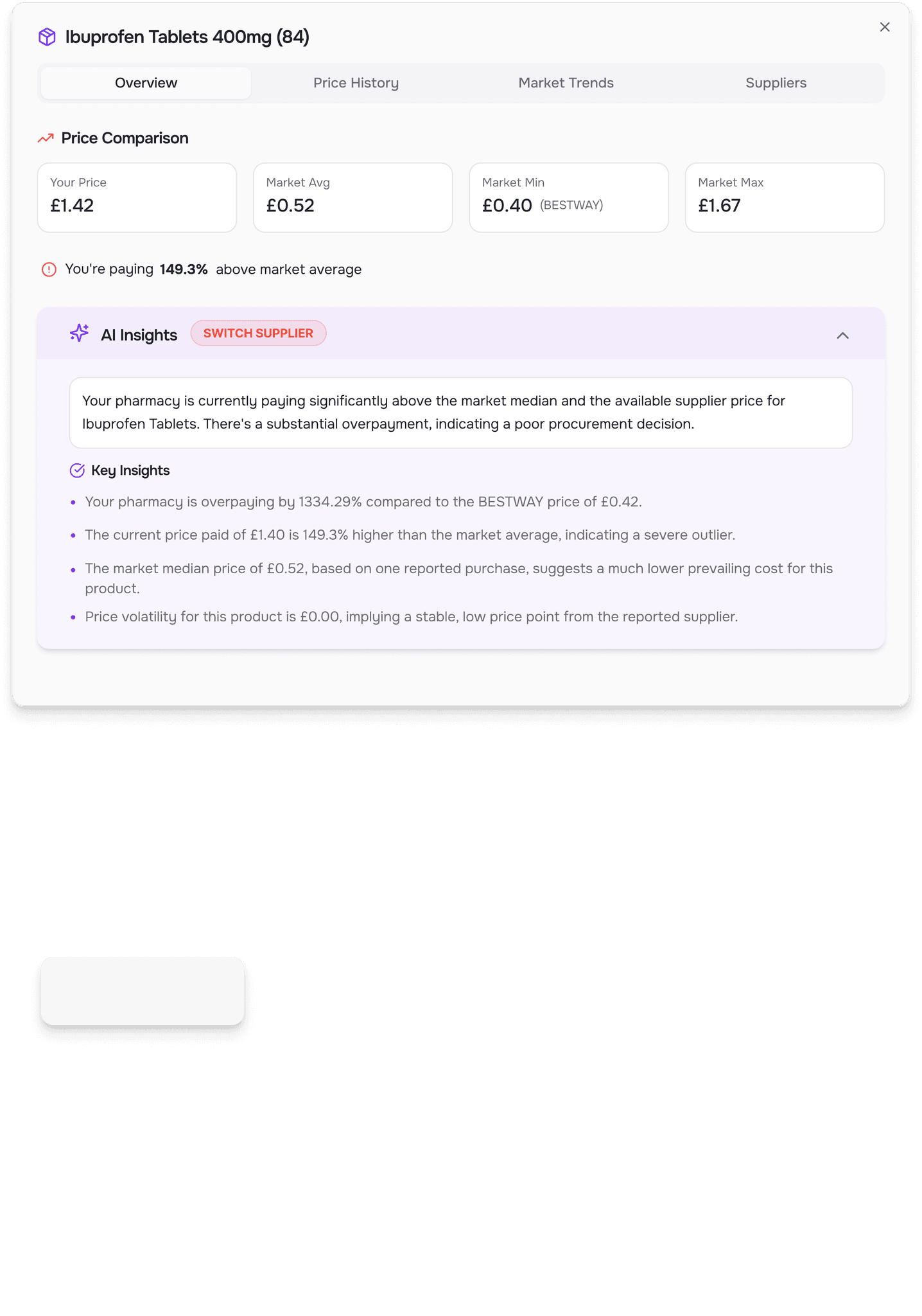 AI tracks your proicing and market averages, shows you whats a good deal, where to switch suppliers, and